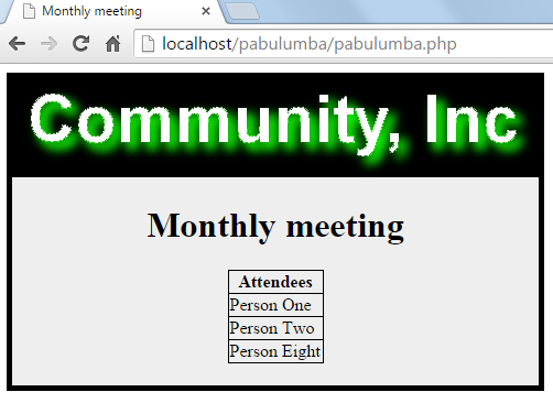The above file will eventually result in a pabulumba web page which contains this: