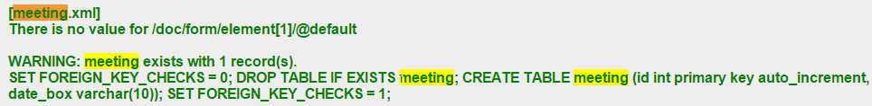 Search for "meeting" again, and cut and paste the enlarged SQL code into the MySQL command window and run it.