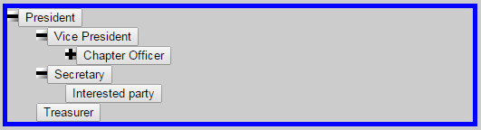 3. Create a "root" entry (this will be invisible in the tree) and mark it as "Is Root Element", then enter the names of office bearers into pabulumba, e.g. add in President, Vice-President, Secretary, Treasurer, Chapter officers, Employees, Volunteers, Casuals, Interested parties. No other entries apart from "root" should indicated as "Is Root Element".